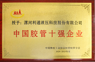 漯河利通液壓科技股份有限公司在生產、研發、銷售橡膠軟管與流體連接件領域已有18年歷史,是一家業內公認的高品質橡膠軟管制造與服務企業。穩定的產品質量及良好的口碑為其連續9年贏得中國橡膠工業協會膠管膠帶分會頒發的“中國膠管十強企業”榮譽稱號。